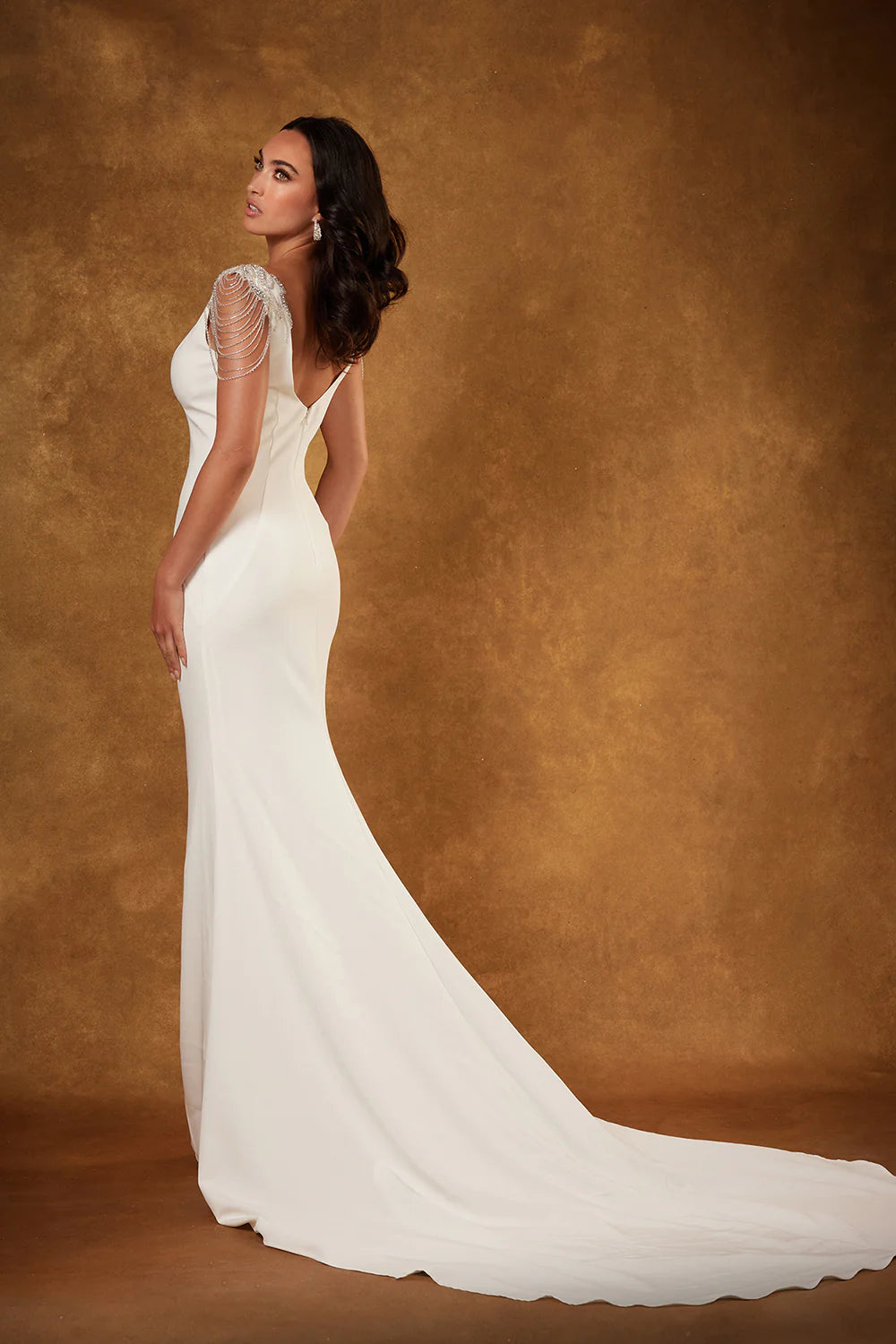 - Fitted Crepe V-Neck Bridal Gown by Abby Lane 97215