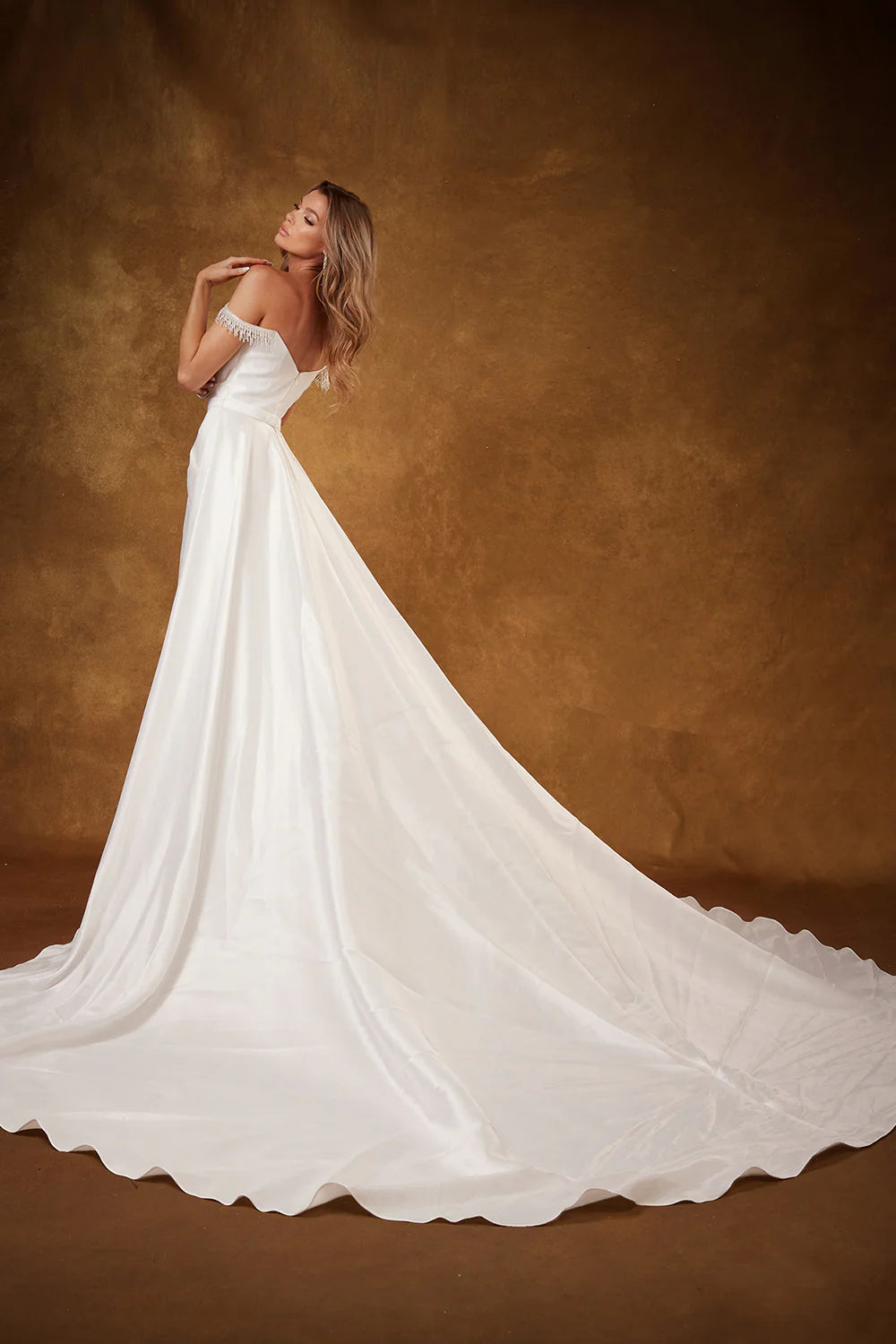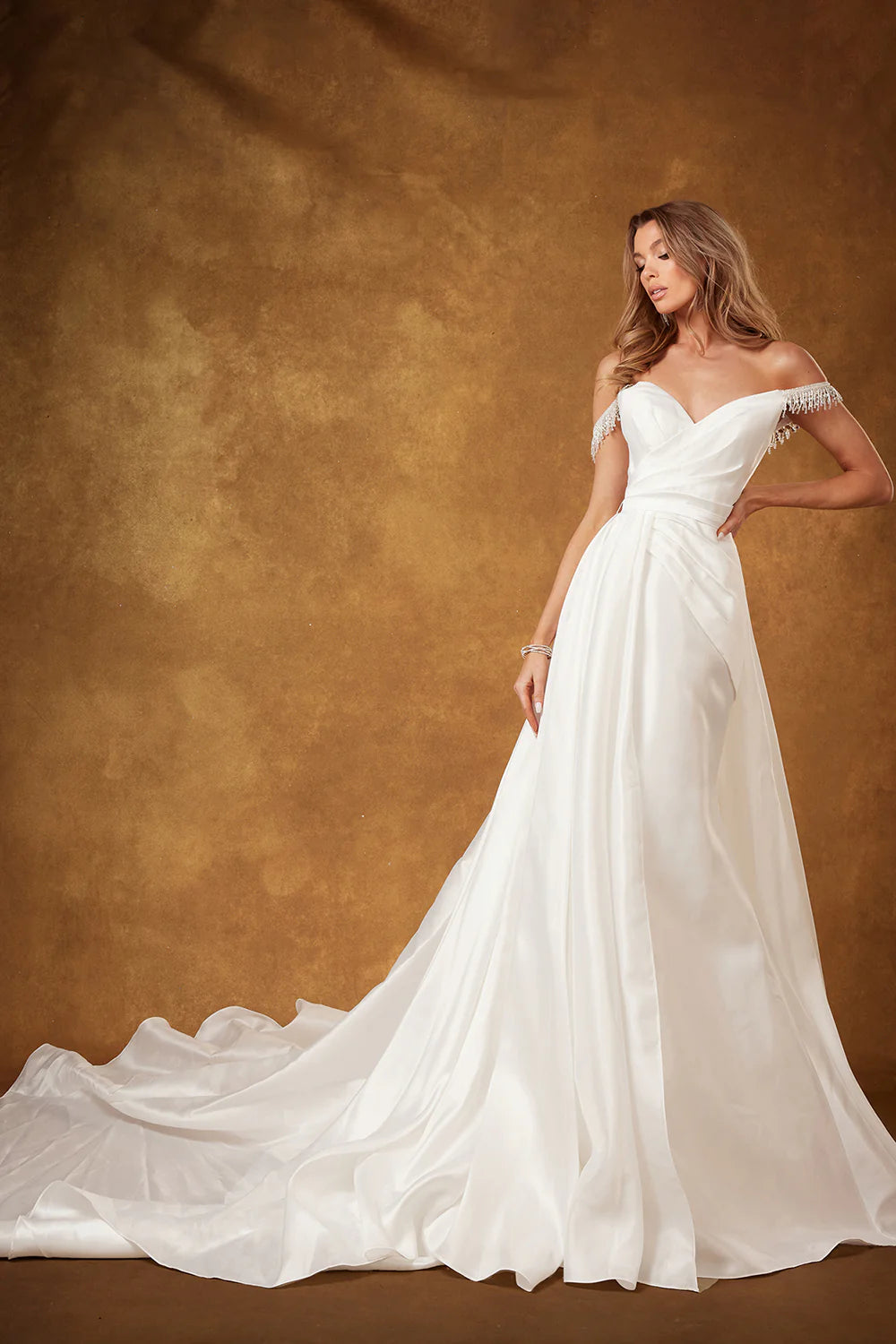 - Satin Off Shoulder Bridal Gown by Abby Lane 97212