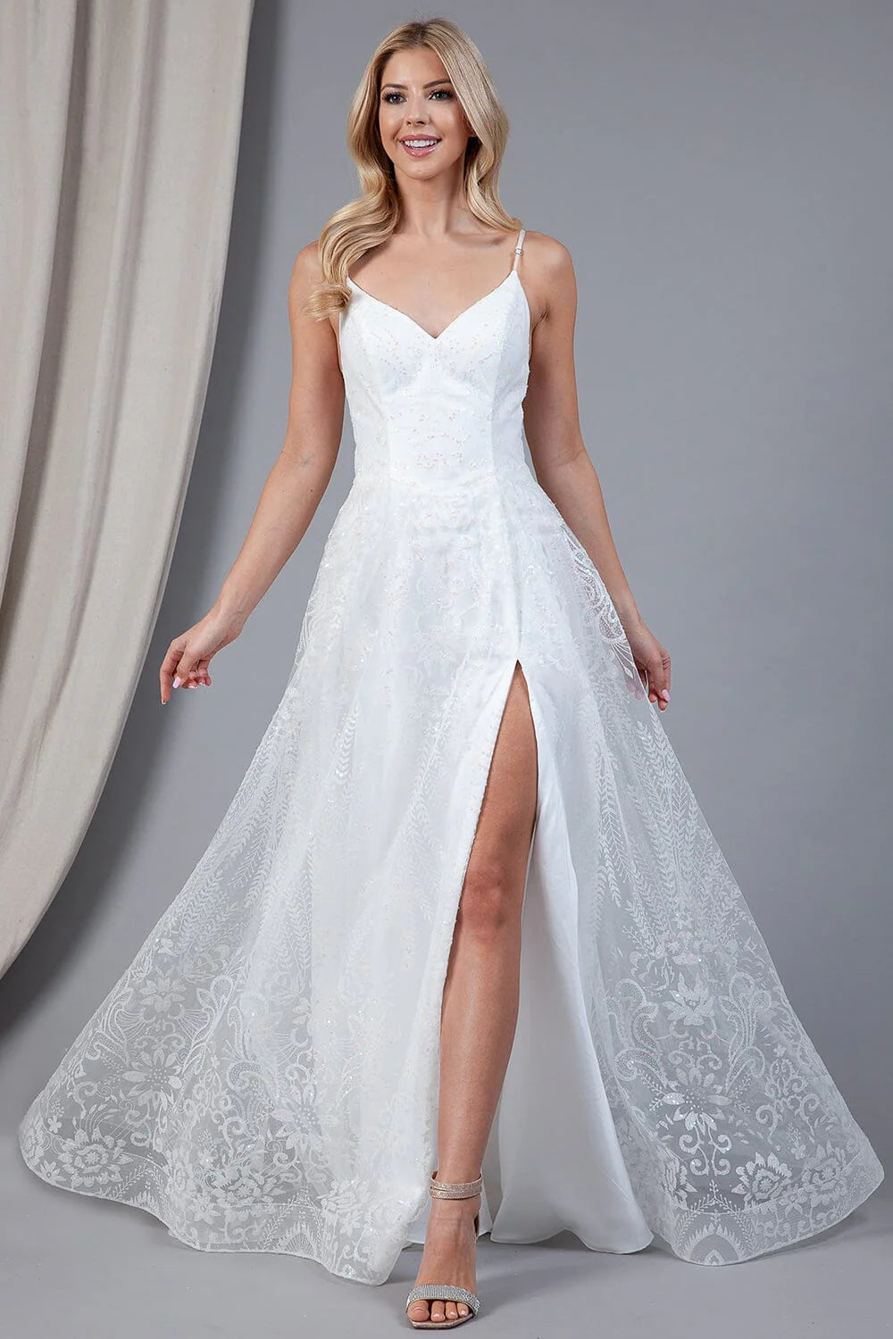 Glitter Print A-line Slit Gown by Amelia Couture EL010