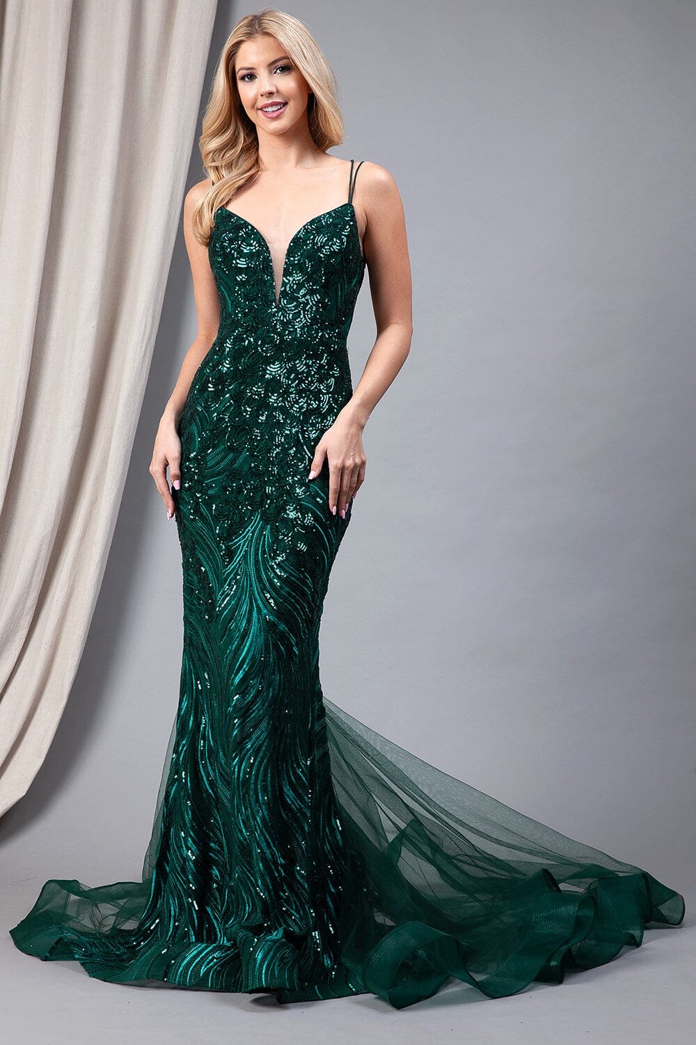 Sequin Print V-Neck Mermaid Gown by Amelia Couture 7021
