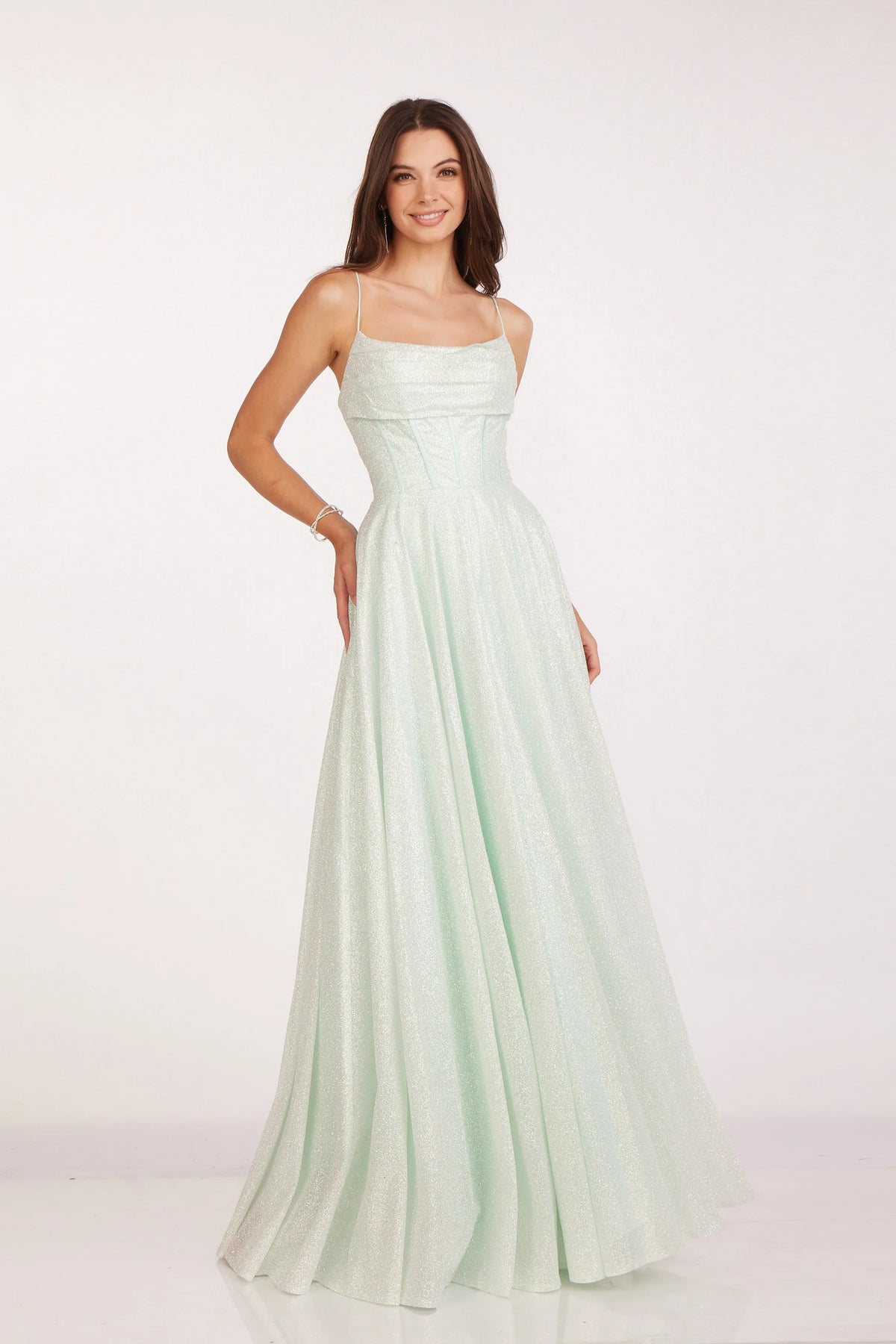 - Glitter Tulle Sleeveless Gown by Abby Paris 90208